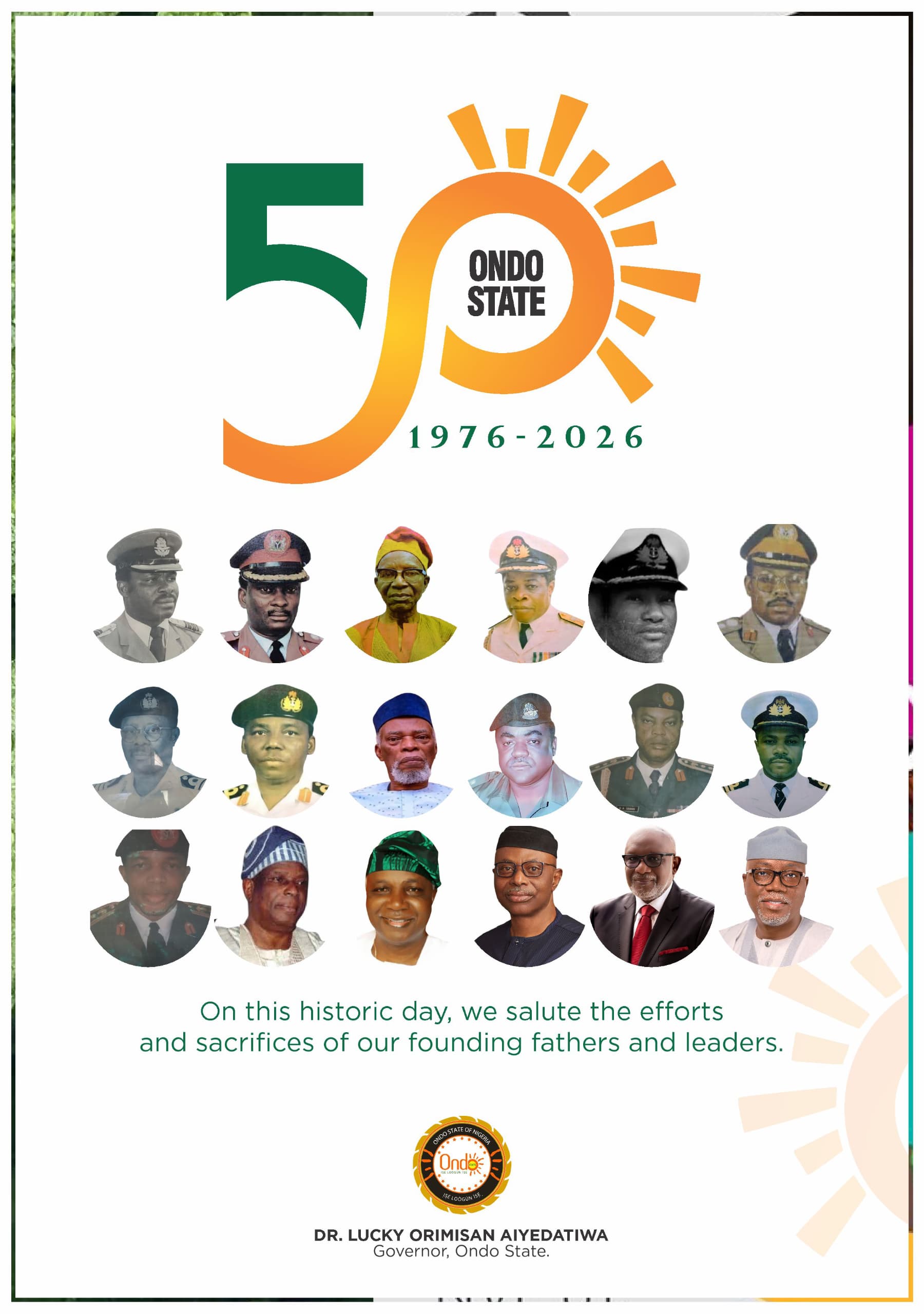 By David Akinadewo-Adekahunsi Governor Lucky Aiyedatiwa on Tuesday formally proclaimed the Golden Jubilee of Ondo State, describing the 50-year journey of the Sunshine State as one defined by identity, resilience, sacrifice and steady progress,...