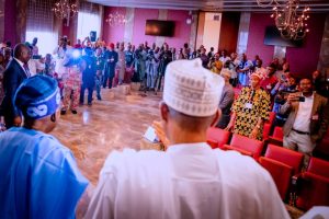However, the President walked past the waiting correspondents after the State Chief of Protocol (SCOP), Ambassador Lawal Kazaure explained the functions of the press gallery to both leaders.