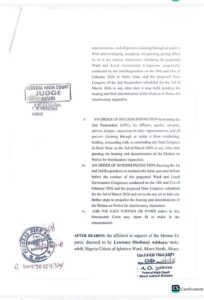 Justice Adegoke further directed both respondents to maintain the status quo ante bellum, the situation as it existed before the conduct of the disputed ward and local government congresses, and to refrain from taking any further steps capable of prejudicing the hearing and determination of the substantive application.