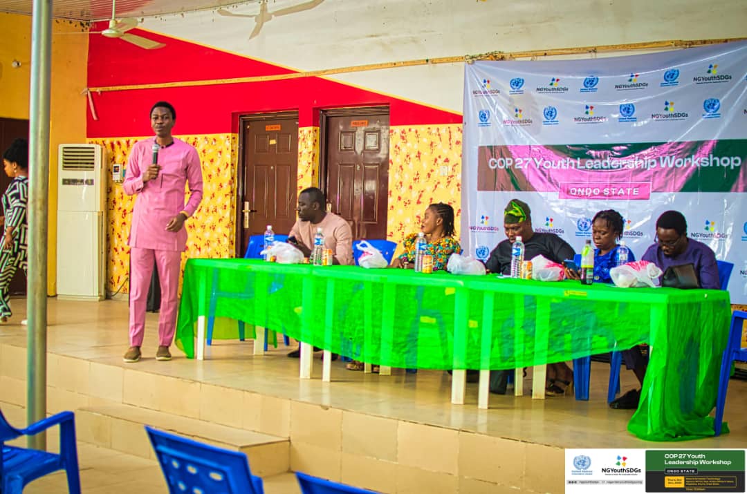 The stakeholders gave the charge in Akure at the 2022 CoP 27 Youth Leadership Workshop, organised by the Nigeria Youth SDGs Network.