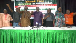 Executive Director, Zero Graft Centre, Kolawole Sanchez-Jude; Declan Ihehaire of the Activists for Good Governance; Ayodeji Ologun, Transparency and Accountability Group; and Olufemi Lawson, Spokesperson for the Coalition, among others,