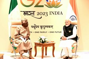 President Bola Ahmed Tinubu with the Prime Minister of India, Shri Narendra Modi, during a Bilateral Meeting at Bharat Mandapam, New Delhi, India.