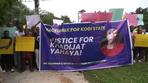 They displayed placards with inscriptions such as “Anyone who ignores Police invitations must be arrested immediately”, “arrest and prosecute killers of Khadijat now”, “Gov. Bello, don’t be soft on promoters of violence”, “we demand peaceful elections in Kogi State”, and “IGP must declare Ajaka wanted now”, among others.